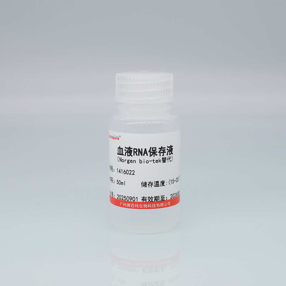 【產(chǎn)品簡介】 適用于動物組織(心,肝,腎,肌肉,睪丸,腦,脾等)、培養(yǎng)細胞、RNA 病毒、果蠅、細菌、白細胞、全血、一些植物組織等。RNAlater 是一種水相的,無毒的組織保存液體,可以迅速滲入新鮮組織細胞的胞漿中,在非凍狀態(tài)下原位穩(wěn)定和保護細胞內(nèi)的RNA。取下組織薄片后立刻浸入RNAlater保存并不影響將來提取RNA的質(zhì)量和數(shù)量。RNAlater消除了RNA樣品需要立刻處理或者必須液氮保存的不方便。浸入RNAlater后,新鮮組織細胞中RNA可以完好的在37?C下保存一天, 在25?C下保存一周, 4?C下保存一個月, 在-20?C或-80?C下長期保存。RNA 病毒樣品(如HCV 和HIV)可在37?C保存一個月。 【包裝規(guī)格】 貨號:1416004-100 100 mL/瓶 貨號:1416004-450 450 mL/瓶1416004