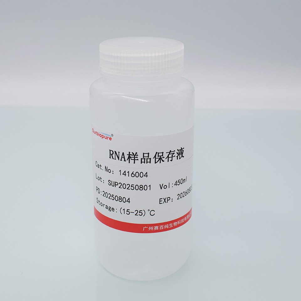 適用于動物組織(心,肝,腎,肌肉,睪丸,腦,脾等)、培養細胞、RNA 病毒、果蠅、細菌、白細胞、全血、一些植物組織等。RNAlater 是一種水相的,無毒的組織保存液體,可以迅速滲入新鮮組織細胞的胞漿中,在非凍狀態下原位穩定和保護細胞內的RNA。取下組織薄片后立刻浸入RNAlater保存并不影響將來提取RNA的質量和數量。RNAlater消除了RNA樣品需要立刻處理或者必須液氮保存的不方便。浸入RNAlater后,新鮮組織細胞中RNA可以完好的在37?C下保存一天, 在25?C下保存一周, 4?C下保存一個月, 在-20?C或-80?C下長期保存。RNA 病毒樣品(如HCV 和HIV)可在37?C保存一個月。